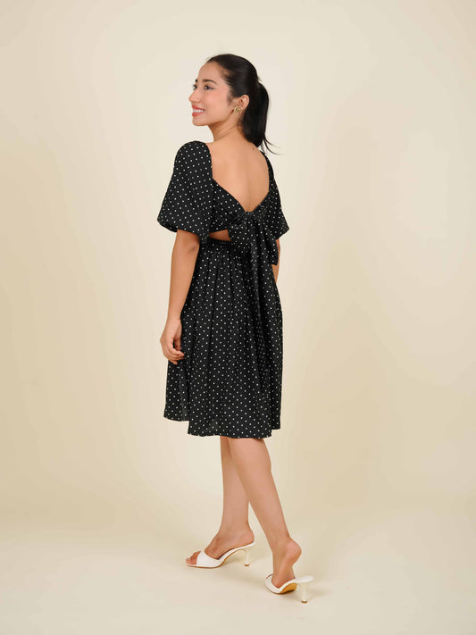 MONOMEE ARORA BLACK POLKA DOT MINI DRESS