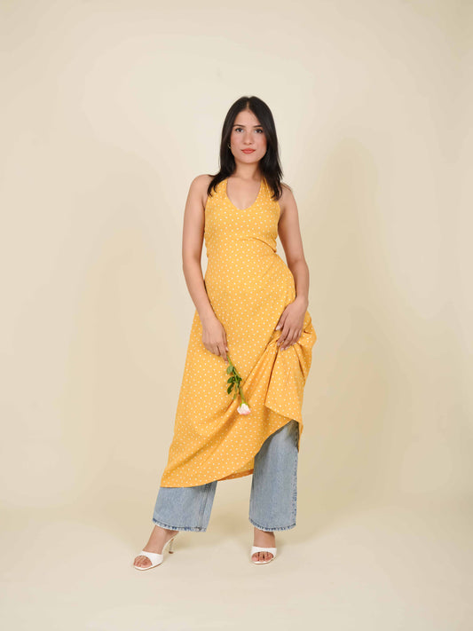 MONOMEE ALESSIA YELLOW POLKA DOT HALTER NECK DRESS