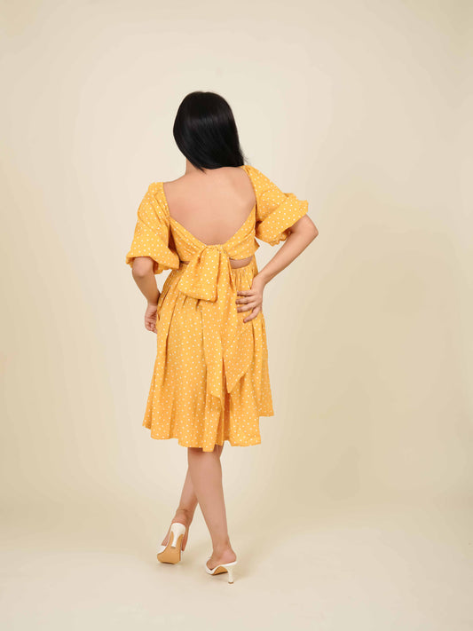 MONOMEE BLOOM YELLOW POLKA DOT MINI DRESS