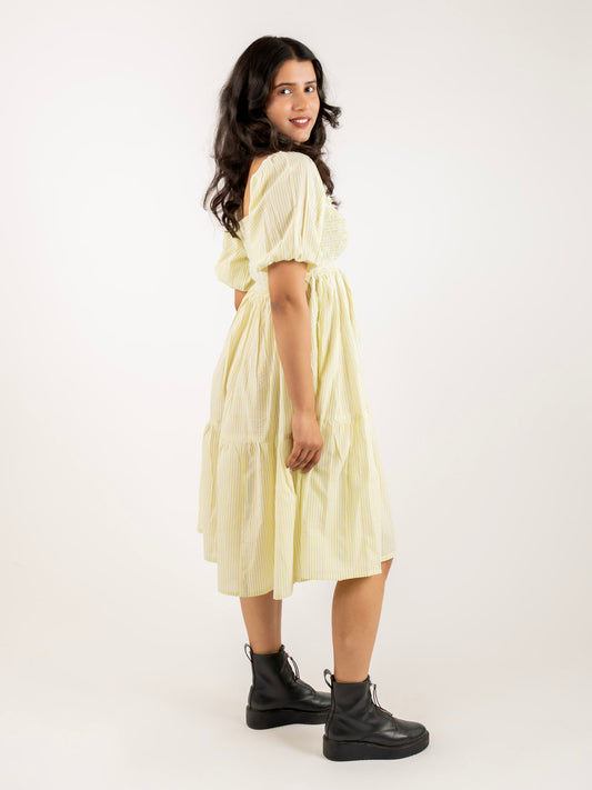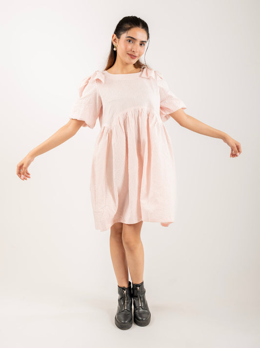 MONOMEE ALEX PINK STRIPED BOW SLEEVE MINI DRESS