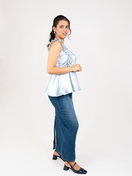 MONOMEE LILIBET ICE BLUE SATIN TOP