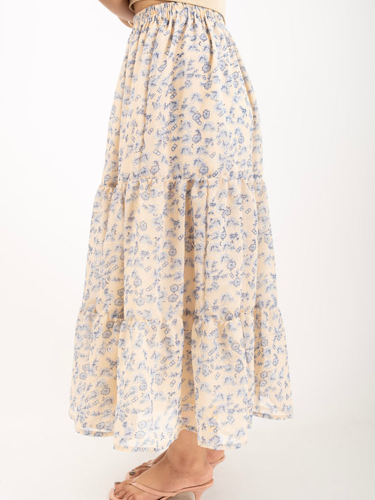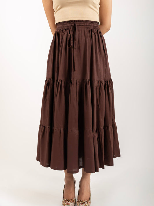 MONOMEE OPHELIA BROWN TIERED MAXI SKIRT
