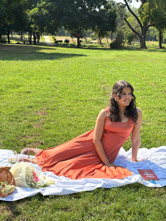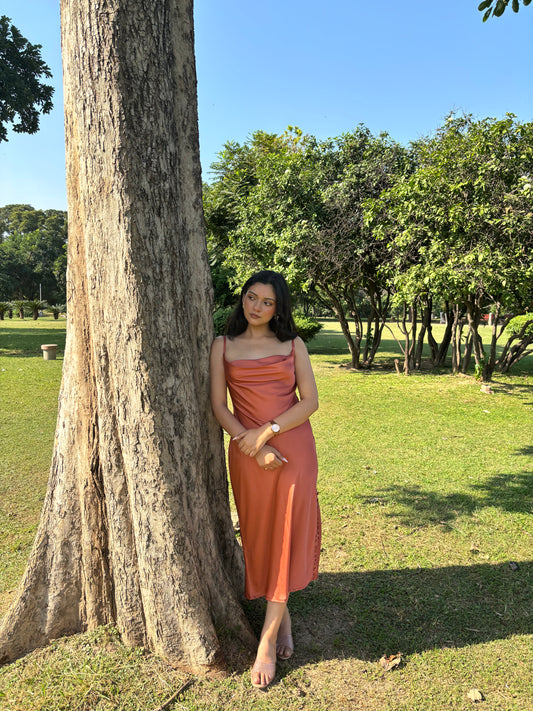 MONOMEE DOROTHY SATIN RUST SLIP DRESS