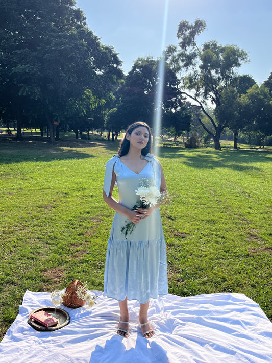 MONOMEE HALLIE SATIN SLIP ICE BLUE DRESS