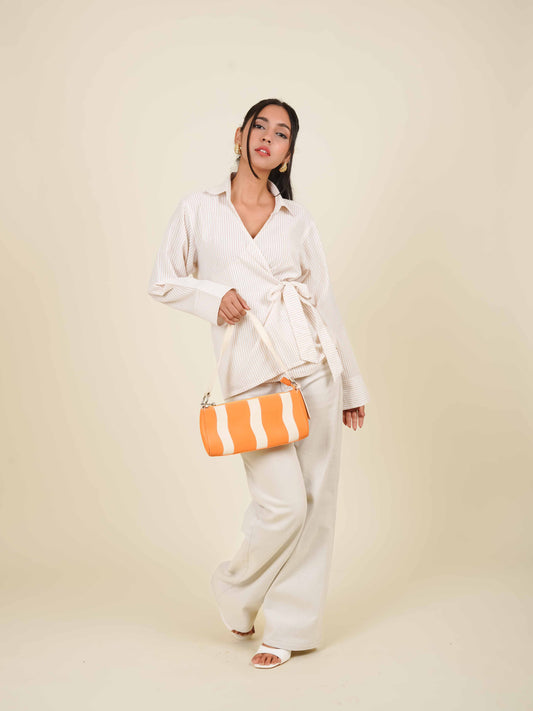MONOMEE CLEMENTINE STRIPE BEIGE WRAP TOP