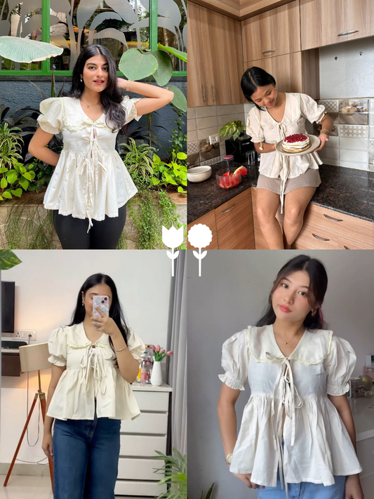 MONOMEE LUNA FRONT BOW TIE PLACKET LACE COTTON TOP