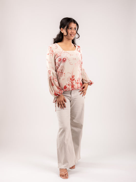 POPPY TIE-KNOT LONG SLEEVE TOP