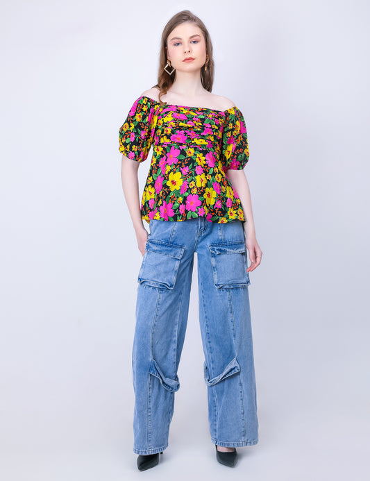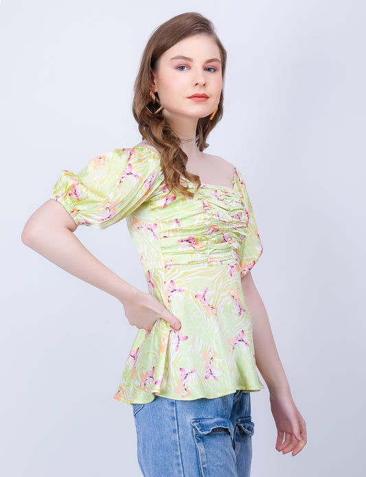 MONOMEE CANDACE PRINTED PEPLUM TOP