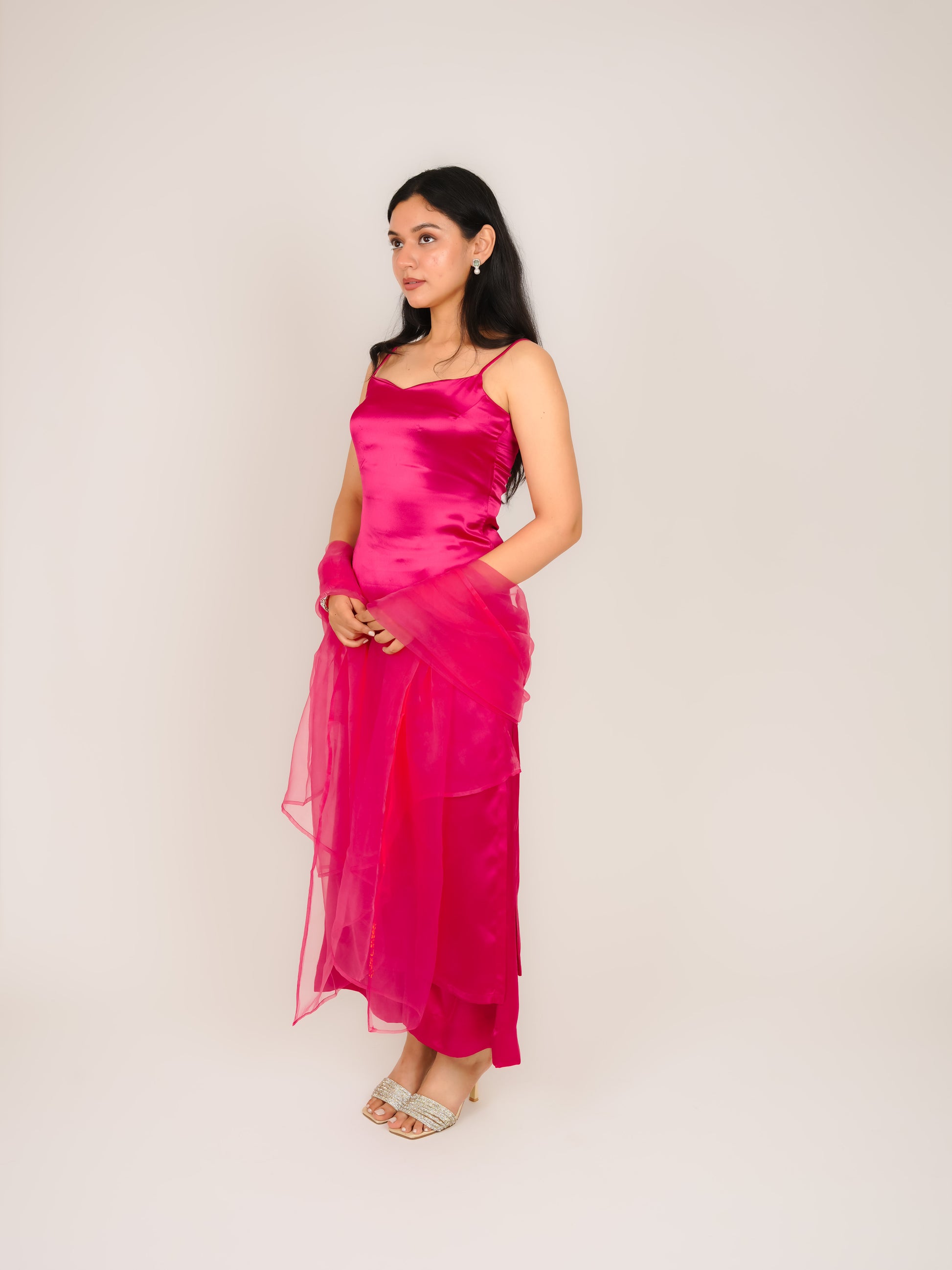 KIYANA MONOMEE PINK SATIN SUIT SET