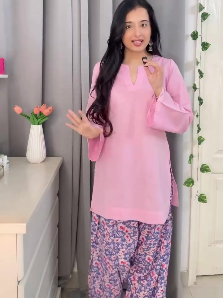 Step into the spotlight with our Aadhvita Farshi Suit Set – a beautiful blend of tradition and trend. Featuring a floral-printed farshi salwar in soothing blue tones and a solid short kurti with a flattering notch neck & bell sleeves this set is a must-have piece to elevate your festive wardrobe. Crafted in soft, breathable cotton for effortless style and comfort.