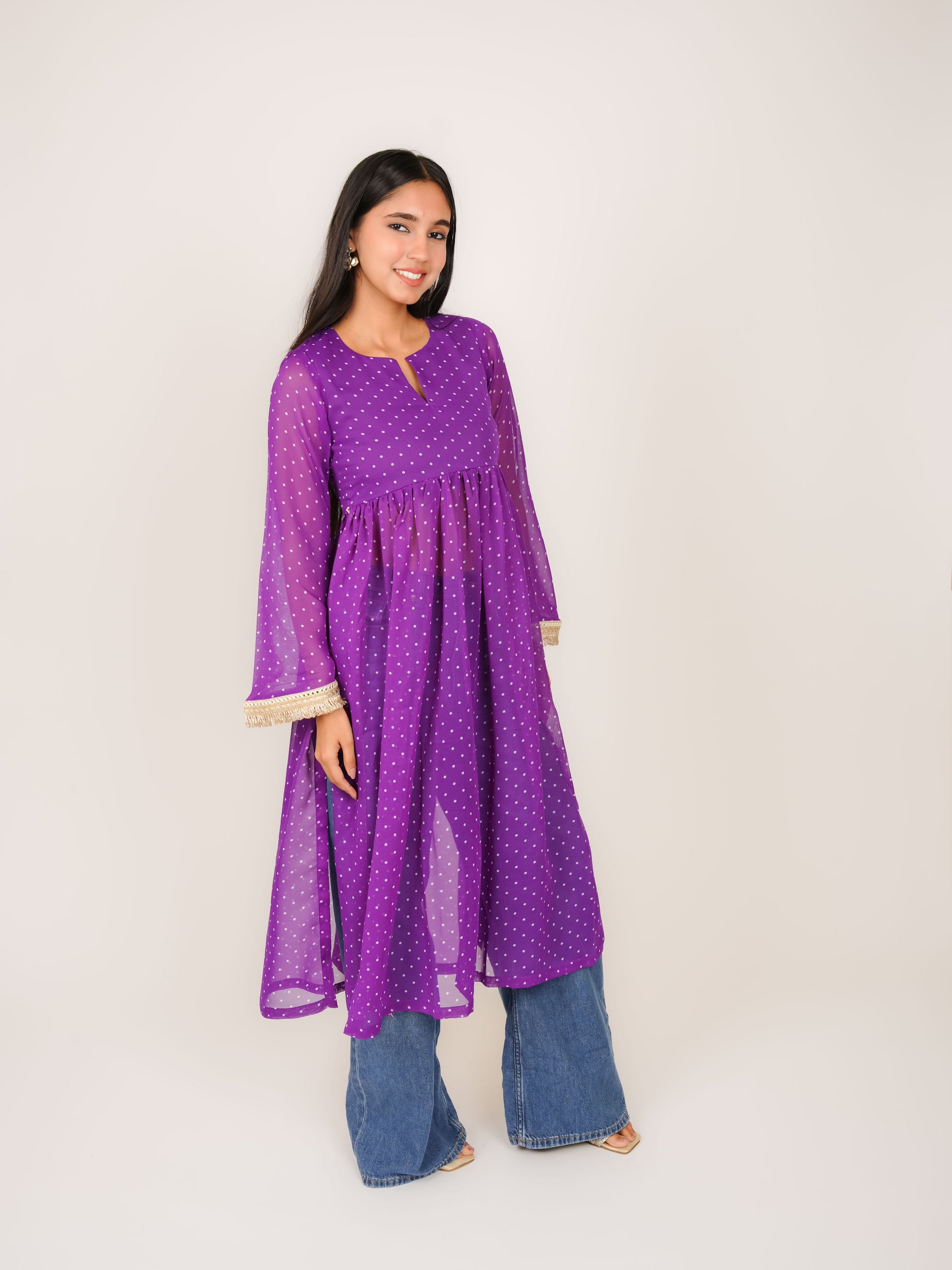 MONOMEE KIARA PURPLE POLKA DOT KURTI