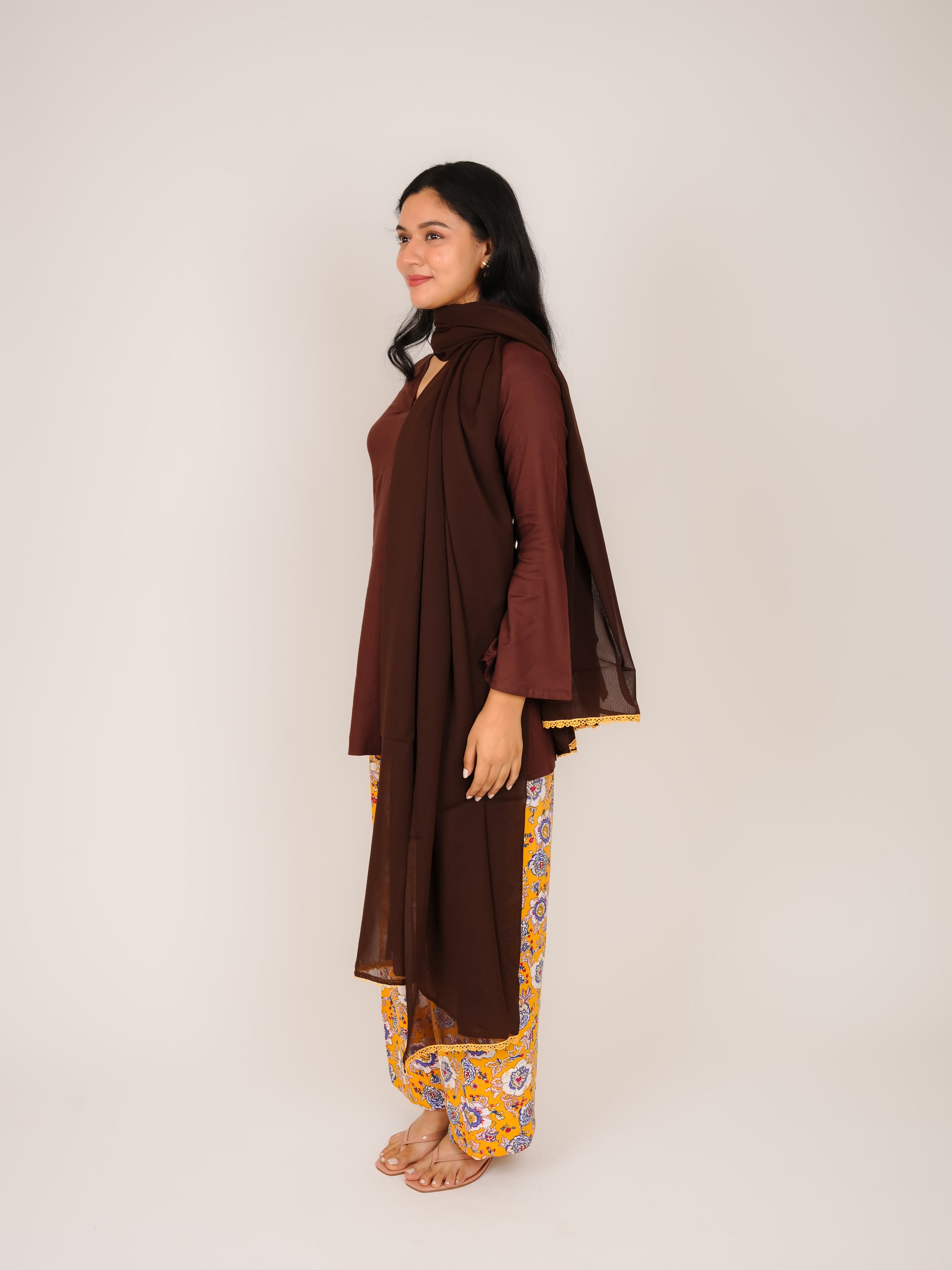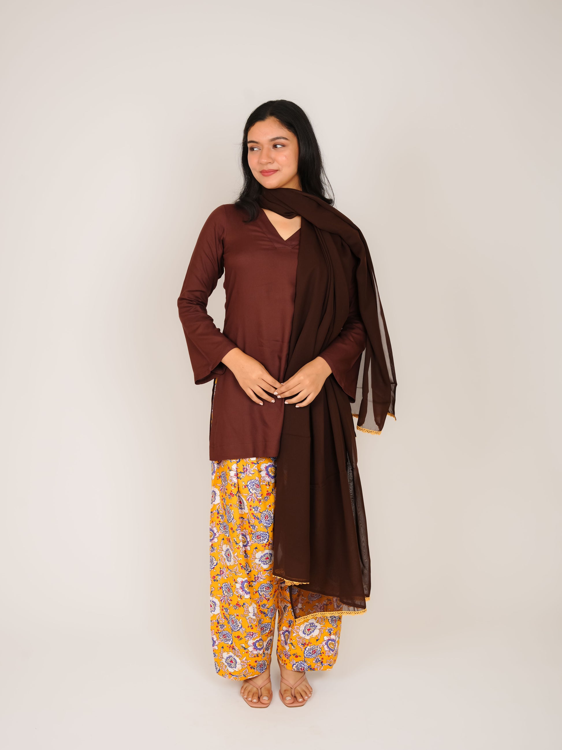 RIYAANSHI BROWN FARSHI SALWAR SUIT SET WITH DUPATTA