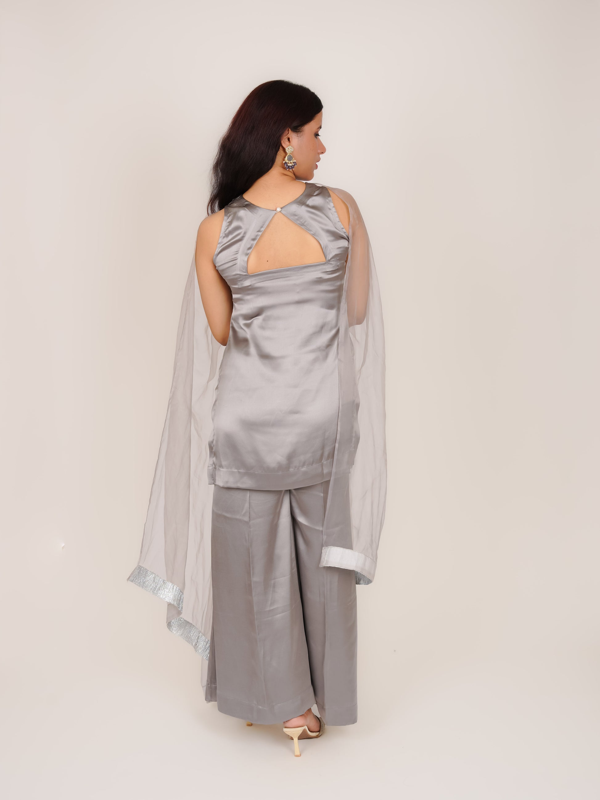 RIDHIMA GREY SATIN SHORT KURTI WITH PALAZZO & DUPATTA