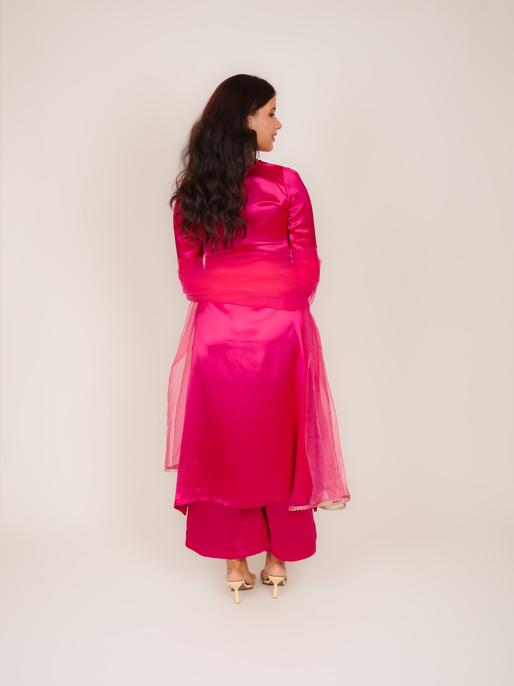 SAANVI PINK SATIN A-LINE KURTA WITH TROUSERS & DUPATTA
